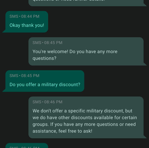 Sample of AI SMS Conversation and Booking